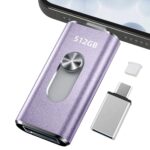 512GBの4in1プッシュ型USBメモリ。iOS、Type-C、USB、Micro USB対応で、高速データ保存が可能。スマホからアルバムの写真を簡単保存!容量不足解消に最適。