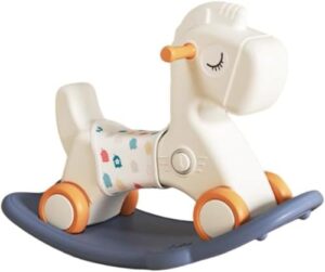 【TVT】子供用ロッキングホース 1〜6歳乗用玩具ロッキングキッズ用木馬キッドライドオントイ、インファントロッキングアニマル 子乗り物おもちゃ 足蹴り車兼用 押し手付き 赤ちゃんの誕生日プレゼント (ホワイト)