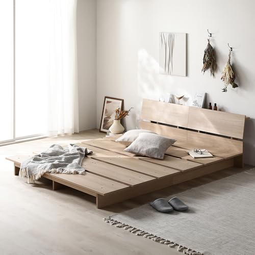 RASIK ベッド ダブル ステージタイプ フレームのみ ナチュラル ロータイプ ヘッドボード 宮棚付き コンセント付き お客様組立 TUULIE トゥーリエ