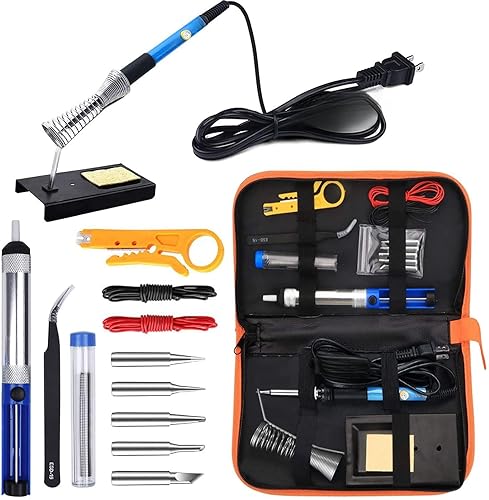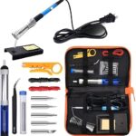aninakoの温度調節可な60Wはんだごては、200~450℃で調整可能。交換コテ先や修理ツール、収納袋付きで携帯に便利。DIYや精密電子作業に最適な15点セット。
