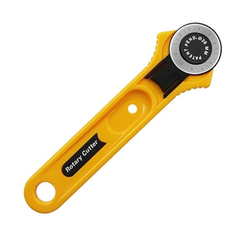 BRIIKPPの28mmロタリーカッターは、イエローのワンタッチレバー付きで、耐久性のある丸刃を使用。布や紙に最適で、DIYや手芸にも便利。シネマ制作にも最適な製品です。