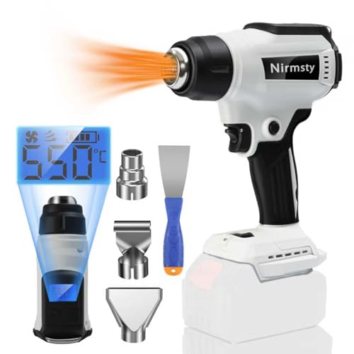 コードレス小型充電式ヒートガン。温度調整30~550℃、LCDディスプレイ搭載。急速加温、350W。マキタバッテリー18V互換。ノズル3本付属。PVC、レジン、塗料剥離など多用途対応。本体のみ、バッテリー別売。