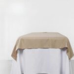 マッサージベッド用シーツ。エステサロンや整体院に最適。呼吸穴付き・穴なしが選べ、サイズは120x200cmのベージュ色。ソフトスキンコットン素材で優しいタッチ。