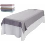 マッサージベッド用のシーツ。サロンやエステで使用でき、呼吸穴あり/なしを選べる。サイズ120x200cm、グレー色で、コットン素材の柔らかいタッチが特徴。施術や整体に最適です。