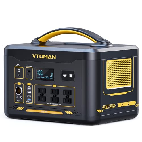 VTOMANポータブル電源JUMP1800は、大容量1548Whのリン酸鉄リチウム電池を搭載し、定格1800Wの高出力を実現。ACコンセント6口、USBポート6口(PD 100W)、DCポート3口有。キャンプや防災に最適な非常用電源。