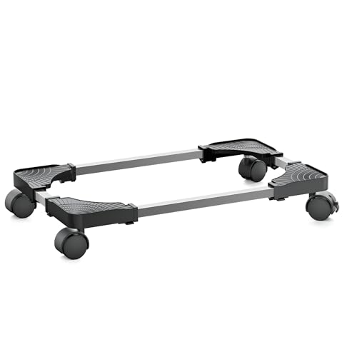 DEWELのCPUスタンドは、デスク下でのPCカートとして使用可能。無段階調節でサイズは42~55cm×22~35cm×7cm。キャスター付きで移動が簡単、熱対策とほこり対策も◎。足元収納に最適なブラックのデザイン。