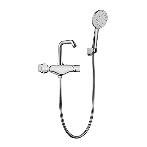 浴槽用蛇口 ハンドシャワー付き 真鍮製浴槽用蛇口セット 壁掛け式 デュアルハンドル浴槽用蛇口 シャワー切替器付き Eの製品情報