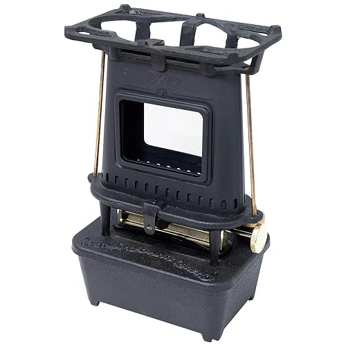 WAQ アイロンストーブはキャンプに最適なオイルランタンで、暖房、照明、調理が可能です。スタイリッシュなブラックデザインで、アウトドアシーンをおしゃれに演出します。