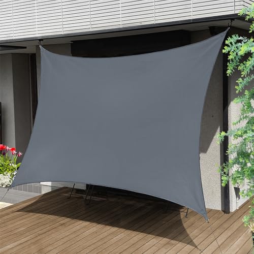KYOSER 日除けシェード オーニング ベランダ 雨よけ 軽量 屋外 目隠し シェード 防水サンシェード 紫外線UVカット 強度UP 庭用タープ 遮熱 断熱用 デッキ簡単設置 固定ロープ 付属 (グレー, 2×2m)の高価買取