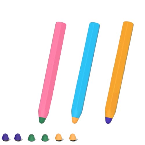 YIBOOOM子供用タッチペンは6角軸鉛筆型で、シリコン製。3本入りでペン先6個付き。タブレットやスマートフォンと兼用、握りやすく、充電不要で便利。