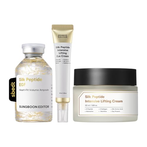 SUNGBOON EDITORのシルクペプチドセットは、弾力とエイジングケアに特化した韓国スキンケアです。アンプル40ml、クリーム50ml、アイクリーム30mlが含まれ、保湿と潤いを提供します。