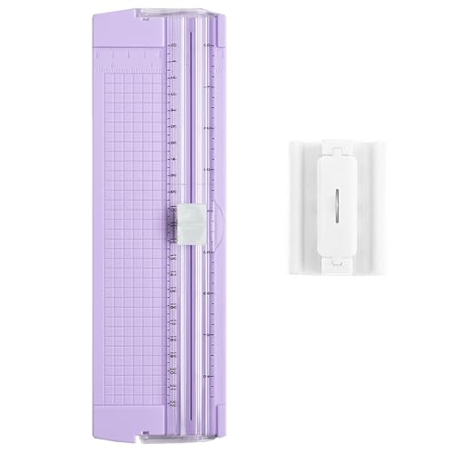 BTtime ペーパーカッター 裁断機 小型 軽量 A4 対応 1個替え刃付き スライドカッター 持ち運び便利 コーピー用紙 厚紙 写真 カード裁断 定規付き 文房具 業務用 家庭用 (パープル)