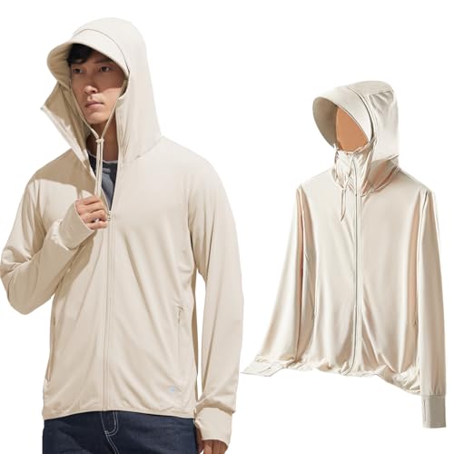 KANGNANのラッシュガードは、メンズ用の接触冷感素材を使用し、UPF50+のUVカット機能で日焼け対策。吸汗速乾性があり、長袖で指穴付き。夏のアウトドアや水着に最適なパーカー(XLサイズ)です。