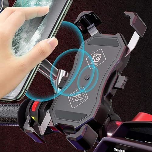 Ambetyのバイク用ワイヤレス充電ホルダーは、クイックホールド機能付きでQi対応スマホを最大15Wで充電。USB切替機能もあり、360度回転で使いやすい。