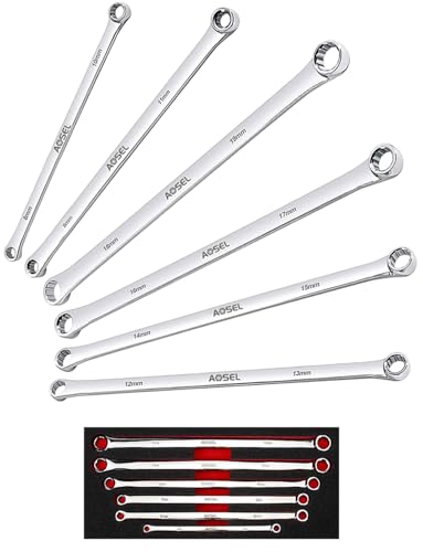 AOSELメガネレンチセットは、超ロングストレートデザインで、ミラー仕上げの六本組。様々なサイズが揃い、収納ケースも付属。耐久性に優れ、プロの現場でも使用可能です。