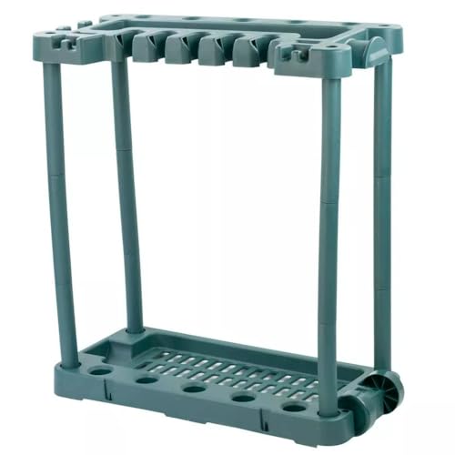 ガーデンツールオーガナイザーは、キャスター付きで移動が便利な園芸工具収納ラックです。長柄・短柄の工具に対応し、屋外やガレージでの使用に最適。簡単に組み立てられるプラスチック製のアイテムです。