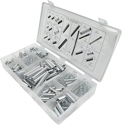 FGHUDSGの圧縮ばねと引張りばね20種類200PCSがセット。コイルばねや引きバネが含まれ、DIY修理やメンテに最適。収納ケース付きで建築、機械、自動車など幅広い用途に対応。