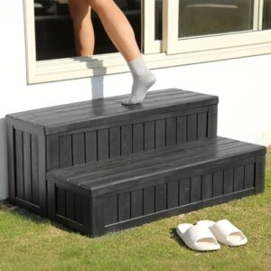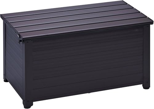 ベンチストッカーは、幅84cm、奥行46cm、高さ48.5cmのアルミ製収納ベンチです。座面耐荷重100kgで、屋外やベランダに最適。サビにくい設計で、ブラウン色が特徴です。