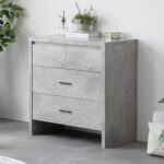 モダンデコのチェストは3段で幅80cm、木製の北欧スタイル。モルタル調の高脚デザインとツートンカラーが特徴。引き出し付きで収納力もあり、シンプルでおしゃれ。ワンルームや一人暮らしに最適です。