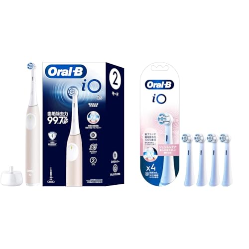 ブラウンのオーラルB iO2Sは電動歯ブラシで、初心者向けの仕様です。ピンクカラーで、替えブラシはジェントルケアの正規品が1年分(4本)付属。iOシリーズ専用です。