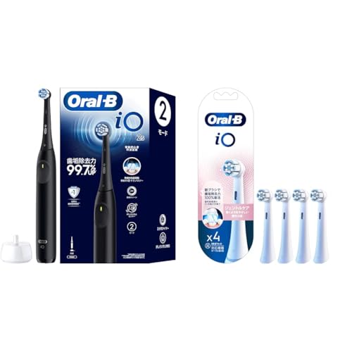ブラウン 電動歯ブラシ オーラルB iO2Sは初心者向けで、ブラックモデル。セットには替えブラシ(ジェントルケア)が1年分(4本)が含まれています。