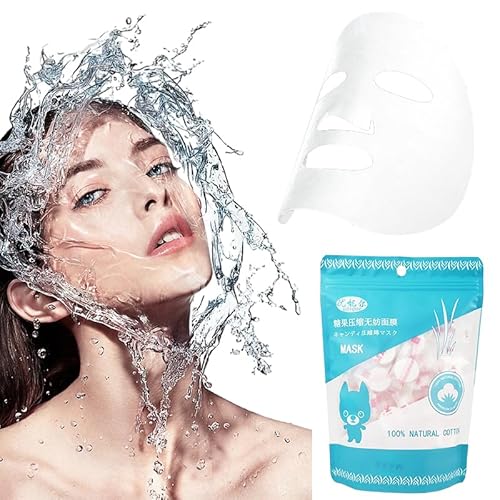 圧縮コットンフェイシャルマスクシート100枚入り。使い捨てタイプで個包装、コンパクト設計。水分補給と保湿に最適で、家庭用や旅行用に便利です。普通厚で肌に優しい。