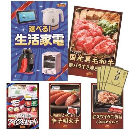 景品キングの忘年会景品15点セットには、選べる生活家電や国産黒毛和牛前バラすき焼き用300gが含まれています。豪華な景品で忘年会を盛り上げるアイテムです。
