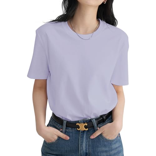 Mmlnrcのレディース半袖Tシャツは、厚手で透けず、ヨレにくい素材。クルーネックで体型カバー効果があり、カジュアルからスポーツまで幅広く活躍。春夏秋の重ね着にも最適な無地デザイン。