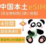 中国本土eSIM、4日間完全無制限データで超高速通信(低速なし)。中国移動認定の純正SIM。Google、LINE、YouTube利用可でVPN不要。緊急時のLINE連絡も可能で、当日発行可。