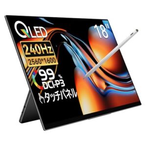 EHOMEWEI モバイルモニター タッチパネル 18インチ 2.5K WQXGA 2560×1600 タッチペン 100% DCI-P3 薄型 6mm リフレッシュレート144Hz ゲーミング モニター スピーカー内蔵 ブルーライトカット ケース付 メーカー3年保証 RQG-180PW