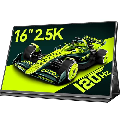 16インチの2K/2.5K 120Hzモバイルモニター。IPSパネル、125% sRGB、400nit輝度。薄型高級アルミ合金製、ノートPC/PS5/Xbox対応。持ち運び便利で、VESAマウント&カバー付き。