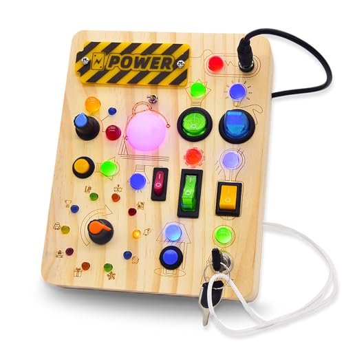 XINBAOHONG 幼児 知育玩具 ビジーボード スイッチ おもちゃ ボタン 23個LEDライト付き モンテッソーリ教育 12種類スイッチ&ボタン 3歳以上 誕生日プレゼント 男女兼用 木製安全設計 電池式の高価買取