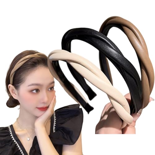 YFFSFDC カチューシャ ヘアバンド レディース フェイクレザー ヘアバンド クロス ねじり ツイスト 发箍 痛くない 編み込み風 可愛い ヘッドドレス 髪飾り 卒業式用 3個入の高価買取ITEM