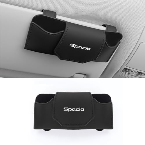 スペーシア(100系ハイブリッド G/X適用)のメガネホルダー。簡単取り付けでサンバイザーに装着。レザー製で眼鏡を保護し、車内をスッキリ収納できるカー用品。