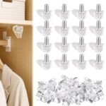 棚受けダボ50個セット。ピン径5mmの金属製プラスチック型で、キャビネットやクローゼット、本棚のDIYに最適。簡単取り付けで家具をしっかり固定。