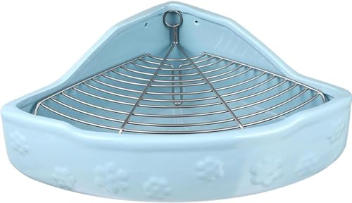 Momglaの小型うさぎ用トイレは、可愛らしい陶器製で大きいサイズと小さいサイズがあり、噛み防止機能も搭載。ハリネズミやモルモット、チンチラにも最適、金網スノコ付き。トレーニングにも便利。