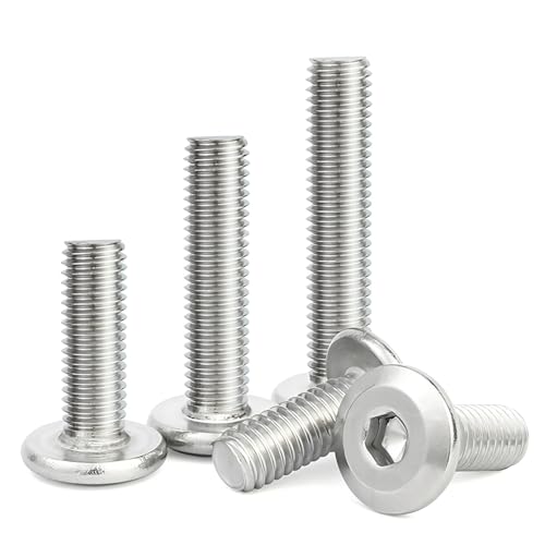 ステンレス鋼製の大皿小ねじセット(M4x14mm、50個入り)。六角穴と面取りデザインで、家具やDIY、木工、オーディオ機器の組立に最適。耐久性があり、様々な用途に対応。