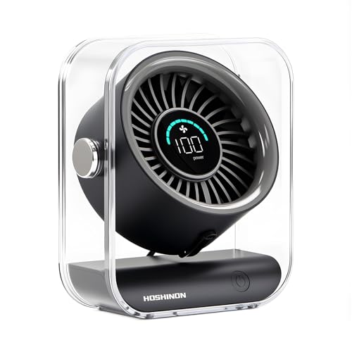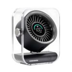 ホシノンの卓上扇風機は、静音設計の小型USB充電式デスクファン。タイプC充電、首振り機能、強力な風量でコンパクトなブラック&グレーのデザイン。