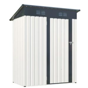 物置 屋外 スチール 倉庫 戸外収納庫 幅162*奥行き92*高181 可動棚付き 物置き おしゃれ 大型 収納庫 防さび ベランダ 防水 ドア 引戸 スチール物置 屋外収納 ロック付き ガーデニング 庭 (ブラック+ホワイト 三角棚あり 補強フレーム付き)