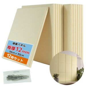 8枚セットの自己粘着防音シート。厚さ1cmで軽量、吸音効果があり、騒音を低減。手描きの水彩イラストで室内装飾にも最適。サイズは縦80cm×横120cm。