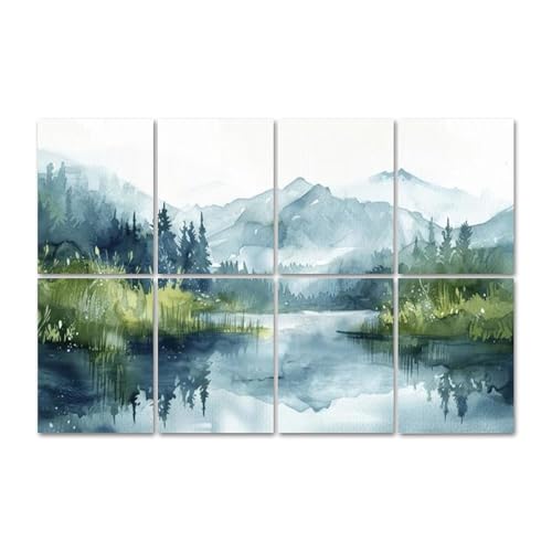 8枚の防音シート。厚さ1cm、軽量で自己粘着タイプ。美しい風景デザイン(山、湖、森)。音を吸収・低減し、騒音を消す。サイズは縦80cm×横120cm。寝室やオフィスの装飾にも最適。
