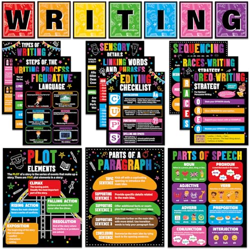 教室教育掲示板用のライティング戦略ポスター19枚セット。ライティングプロセスやガイドを視覚的に示し、新学期の中高校英語教育に最適な黒板・ウォールアート装飾として役立ちます。