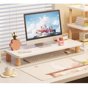 MJKQ9 かわいい 机上台 木製 モニター台 1段 デスクトップ用 デスク上置棚 卓上 70*20 コンピュータモニタースタンド ヴィンテージ 机上ラック 広い収納空間 モニター台 収納ラック モニタースタンド キーボード収納 配線隠し 多機能 ホワイト