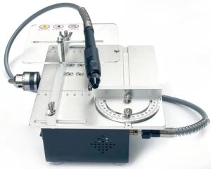 ミニテーブルソー 卓上 木材作業台 卓上丸鋸盤 7段変速 小型 DIY 切断機 0-90°角度調節切断 木材/基板/アクリル/金属用 小型DIY 木工用 0-30mm鋸刃昇降 鋸刃4枚付き 研磨 木材/アクリル板/プラスチック/金属用 切断や研磨や彫刻などに適 角度定規付き (D)
