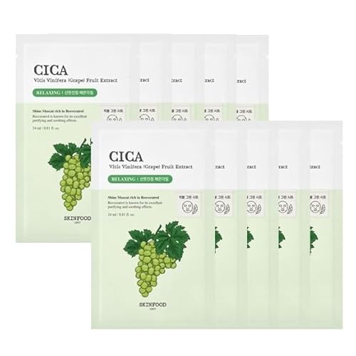 SKINFOODのシャインマスカットシカマスクは、10枚入りのシートマスクです。韓国スキンケアのフェイズパックで、肌をしっかり保湿しながら、明るく健康的な肌へ導きます。