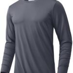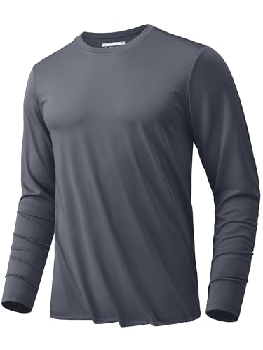 KEFITEVDのメンズ長袖Tシャツは、スポーツウェアに最適なストレッチ素材で作られ、速乾性がありトレーニングに最適です。薄手でUVカット機能があり、釣りやジョギングにも最適。ダークグレー、Lサイズ。