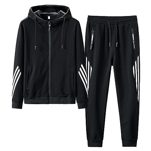 ジャージ上下セット メンズ XLサイズ。フード付きでスタイリッシュなデザイン。吸汗速乾・通気性に優れ、春秋冬のランニングやカジュアルなスポーツシーンに最適。カラー:ブラック。
