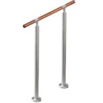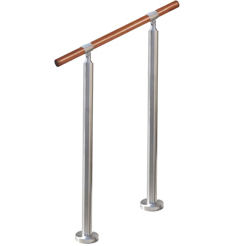 YHEYSMUXの60cm屋内外階段手すりは、茶色の無垢材(ブナ)と304ステンレス鋼製。DIY向けで、角度調整可能。外径35mm、玄関や廊下、庭に最適。取り付け簡単。