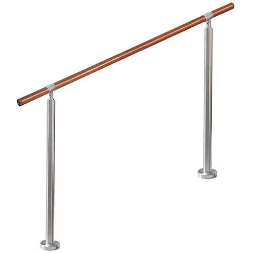 YHEYSMUXの140cm屋内・屋外用の茶色無垢材手摺り。ブナ丸棒と304ステンレス鋼を使用し、DIYに最適。角度調整可能で、取り付けも簡単。外径35mmのデザイン。玄関、廊下、庭に対応。