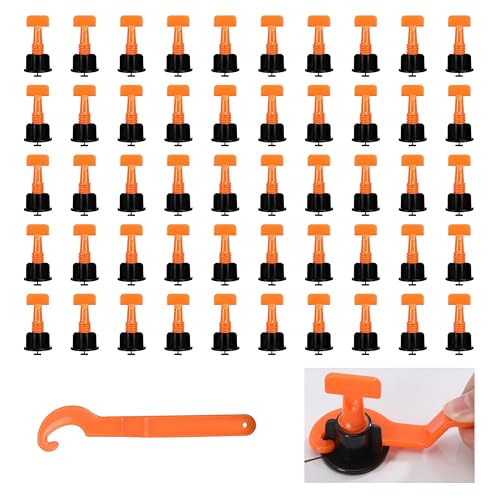 Anfiodas タイルスペーサー タイルクリップ 目地スペーサー タイルレベリングシステム レベラーを備えた再利用可能 壁床構築用 タイル レベリング 特殊レンチ付き (50個セット) 高価買取中